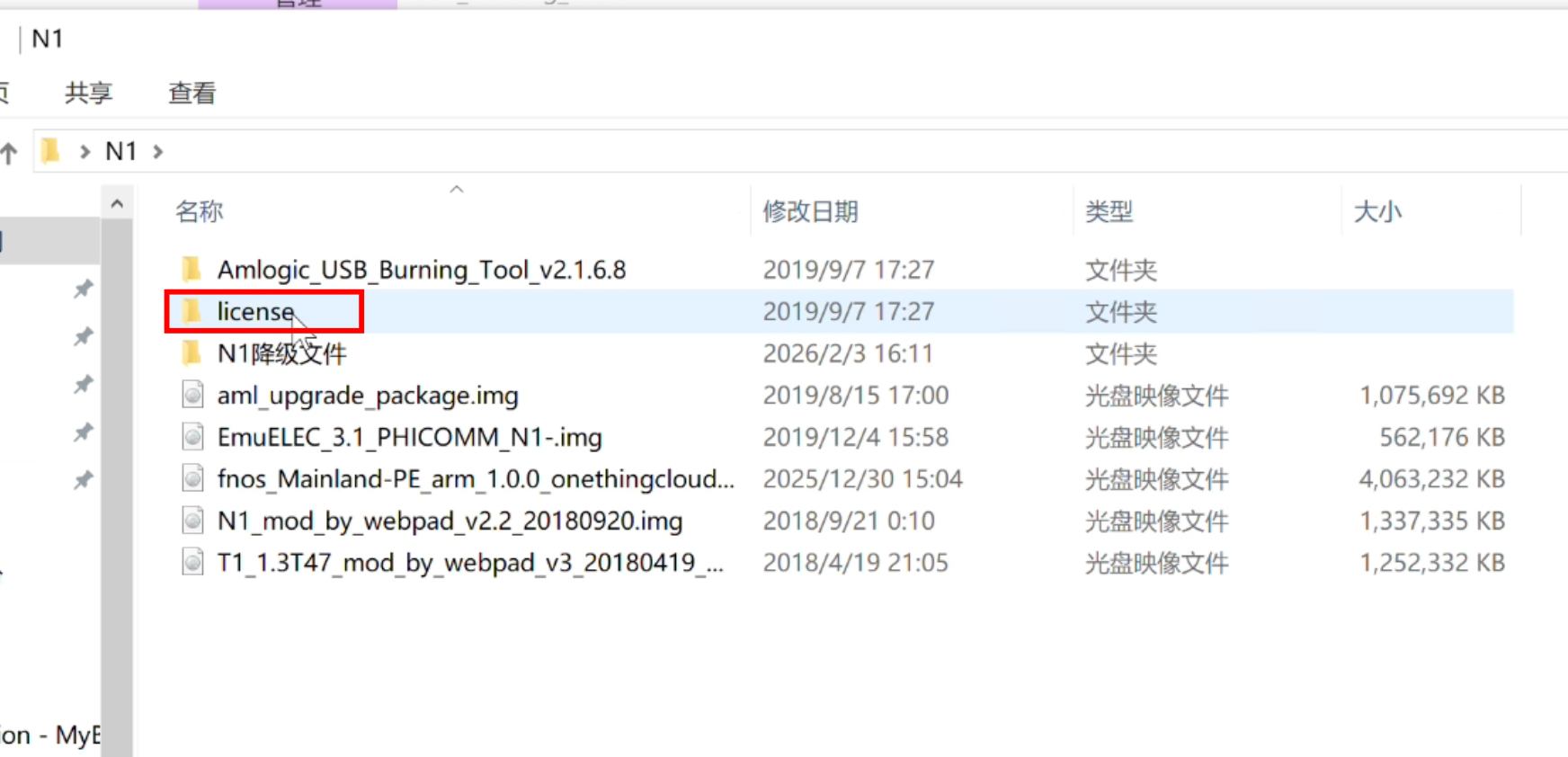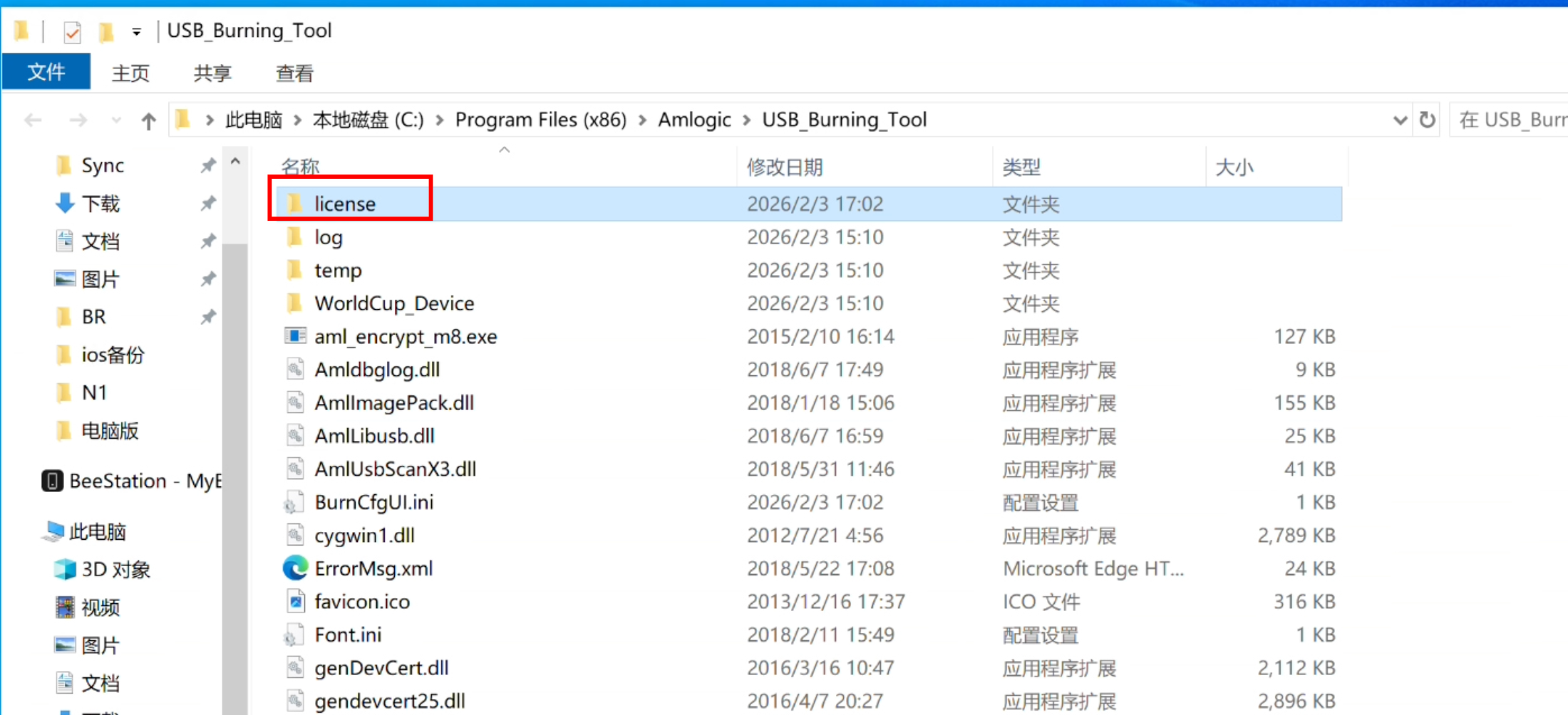 打开USB_Burning_Tool工具的文件位置。把license文件夹复制进去。