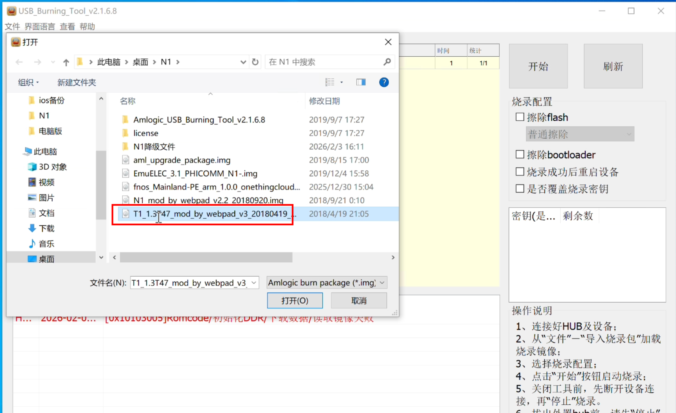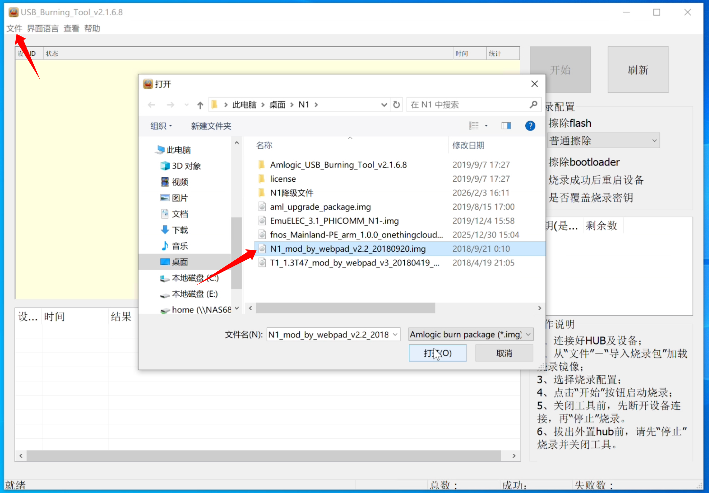 1、使用USB_Burning_Tool工具,导入N1系统包。