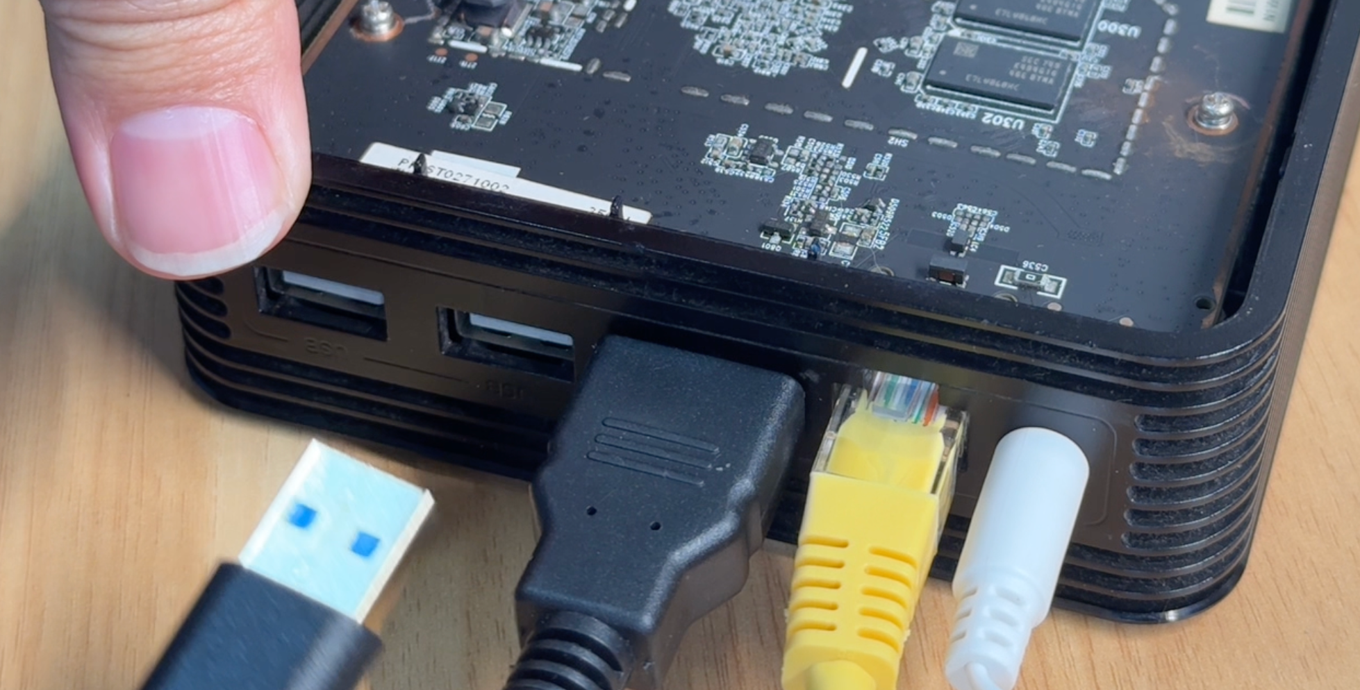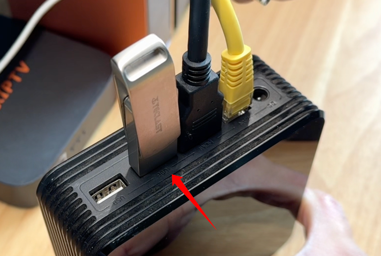 把U盘插入到HDMI旁边的USB,最后插上电源。自动启动并自动开始安装Arm飞牛。