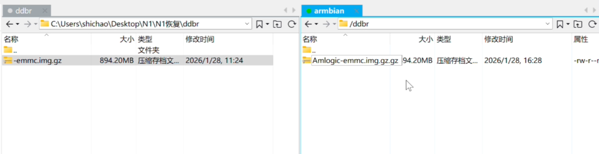 5、使用ftp工具,将恢复用的emmc文件替换设备里的emmc文件,保持设备里的emmc文件名。