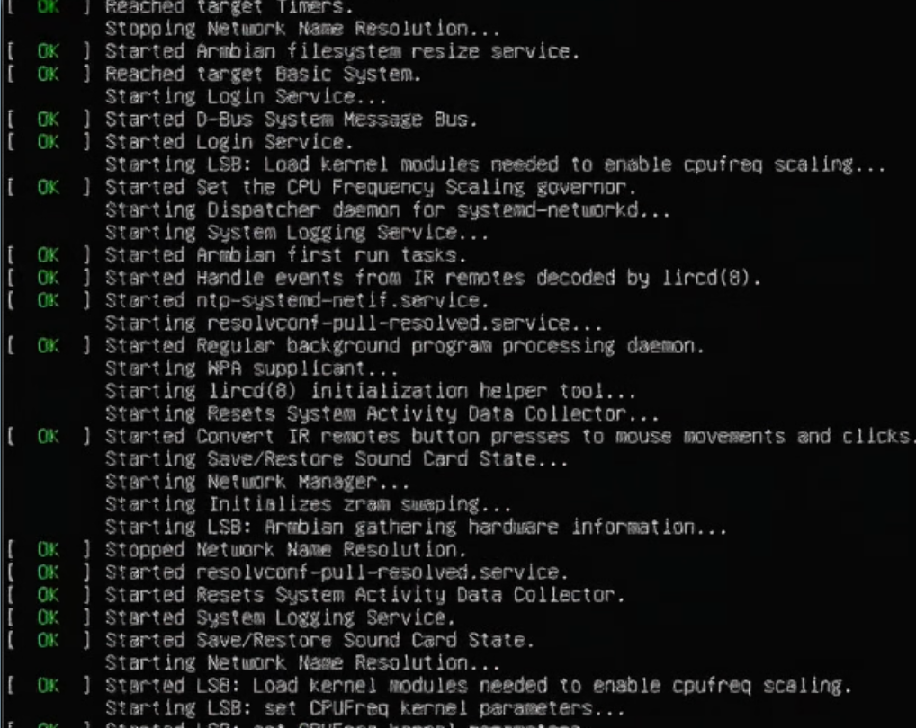 2、将完成的U盘插入到HDMI旁边的USB口,插电启动。进入到Armbian系统。