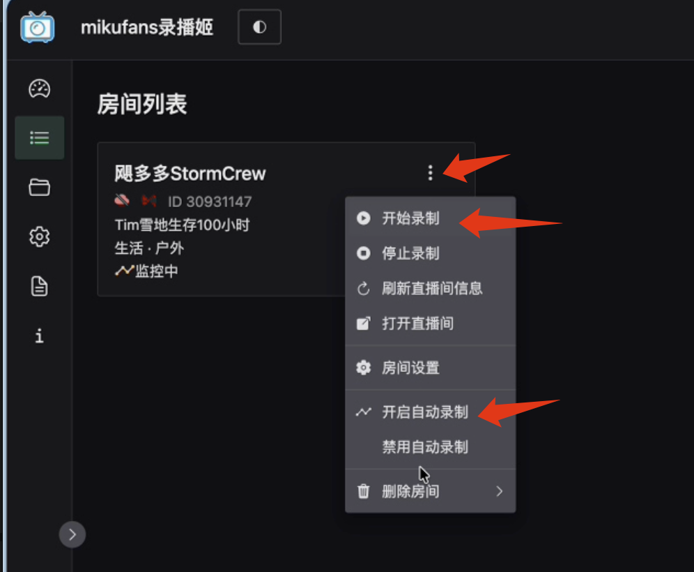 看到直播间出来后,可以开始录制,也可以自动录制。自动录制就是直播间开播后进行录制。