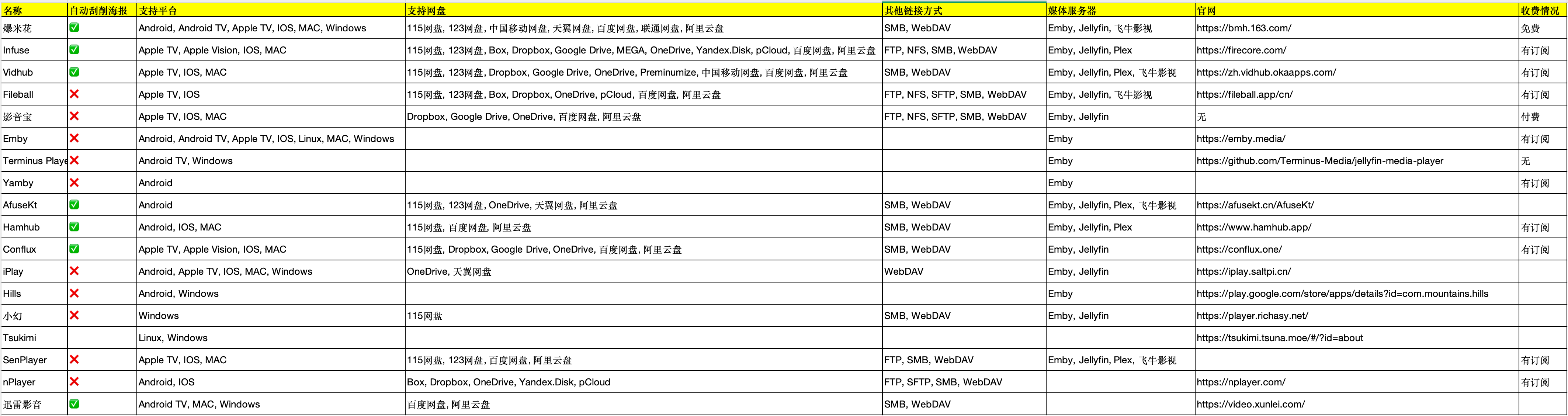 播放器+云盘存储,播放器自带数据库,可以刮削海报/字幕啥的。当然这里也包含了那些自带了海报墙的云盘。